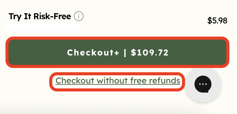 To opt-in, click the green "Checkout+" button. To opt-out, click "Checkout without free refunds".